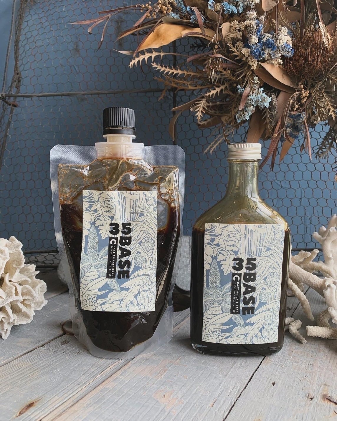 35BASE クラフトコーヒーシロップ 3個セットは、自家焙煎したコーヒー豆を一杯一杯ハンドドリップし、コーヒーと島ざらめをじっくり煮詰めた無添加手造りシロップ。